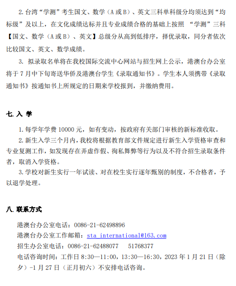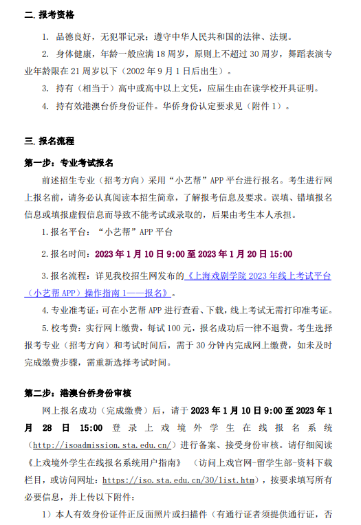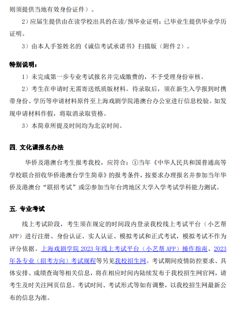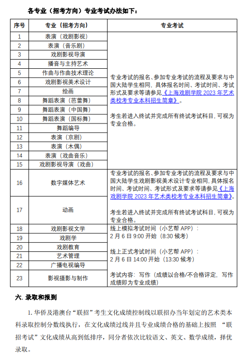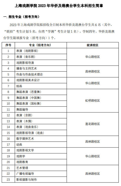 上海戏剧学院2023年华侨及港澳台学生本科招生简章