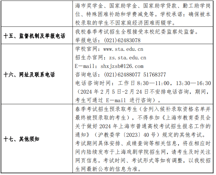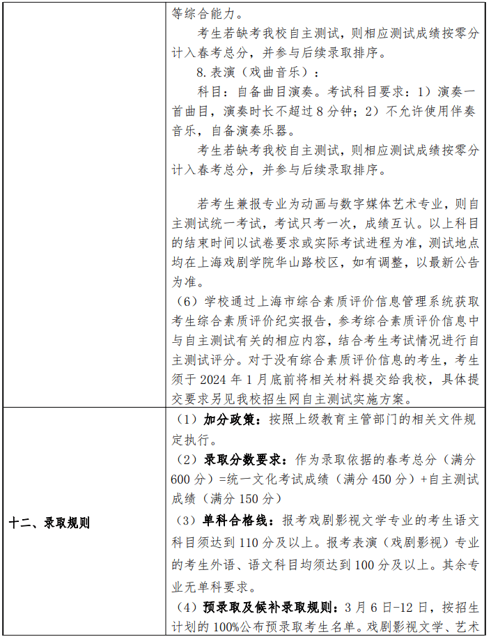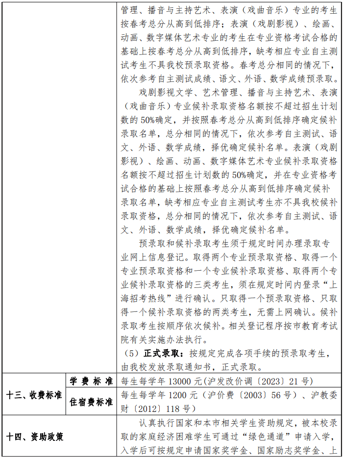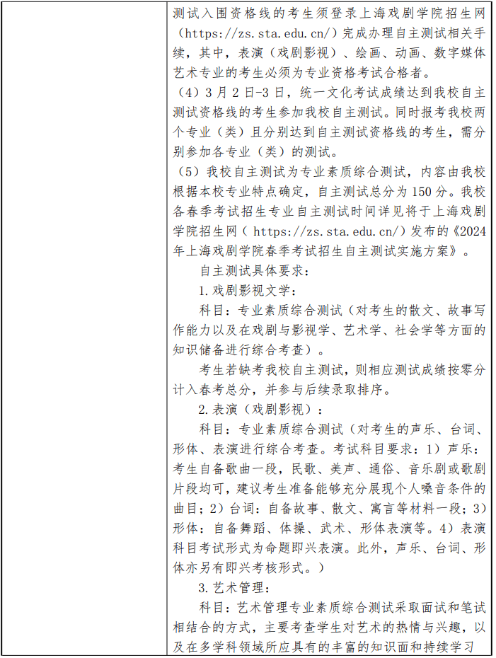 上海戏剧学院2024年春季高考招生章程